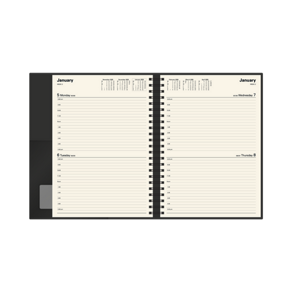 With a convenient A5 size (14.8 x 21cm) and a day-to-page format, the diary offers ample space for writing while remaining portable enough for on-the-go use. Its thoughtfully designed features make it an essential tool for personal, business, or school planning.