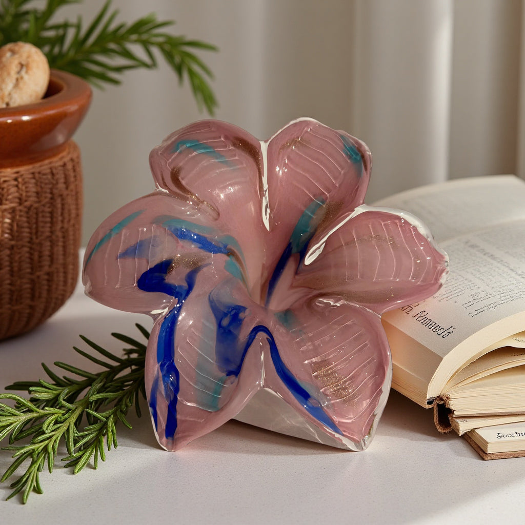 Everlasting Glass Flower Soft Pink, Blue & Gold