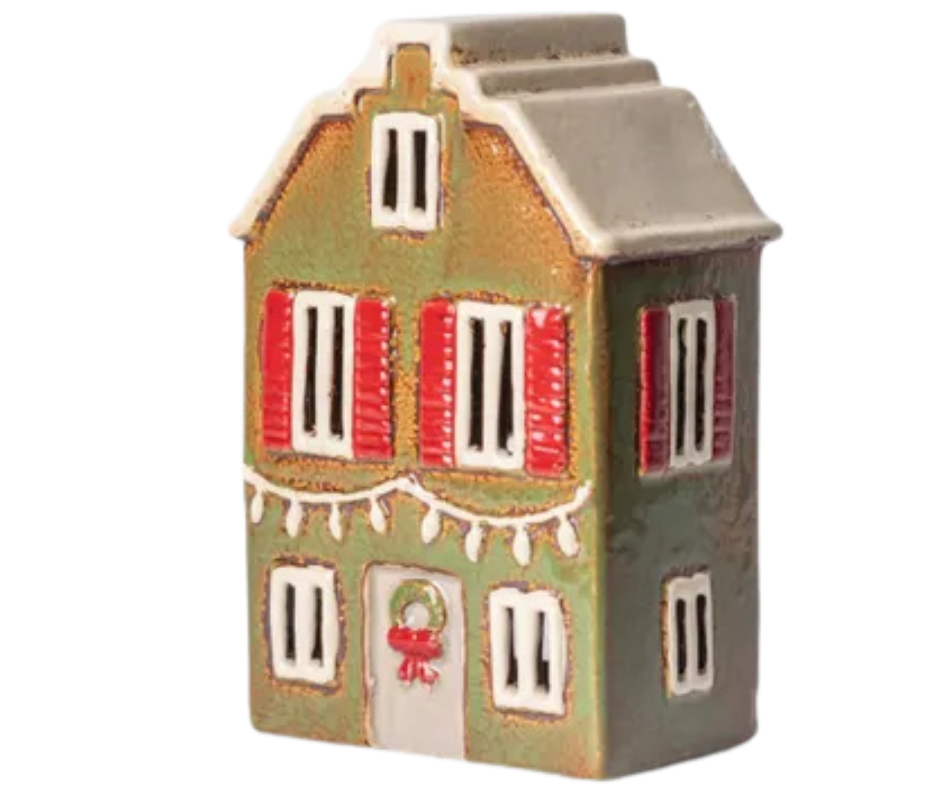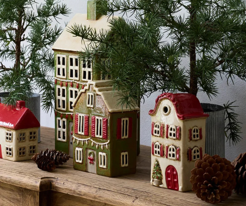 Create a magical festive village with our traditional ceramic tealight houses. Each piece features hand-painted details and charming Christmas-inspired designs, making it the perfect addition to your holiday décor or home display. When lit, the tealight candle casts a warm, inviting glow, bringing your space to life with cozy charm.