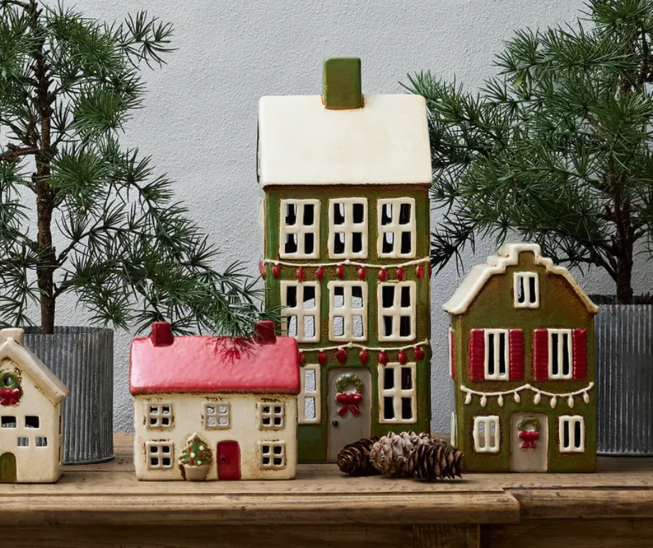 Create a magical festive display with our traditional ceramic tealight houses. Each house is hand-painted with intricate details, designed to capture the charm of festive village scenes. Its large size makes it a striking centerpiece for Christmas displays or year-round decorative accents, filling your space with warmth and cozy ambience.