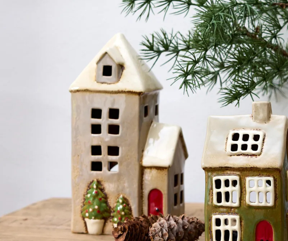 Traditional Ceramic Tealight House – Hand-Painted Festive Village Décor