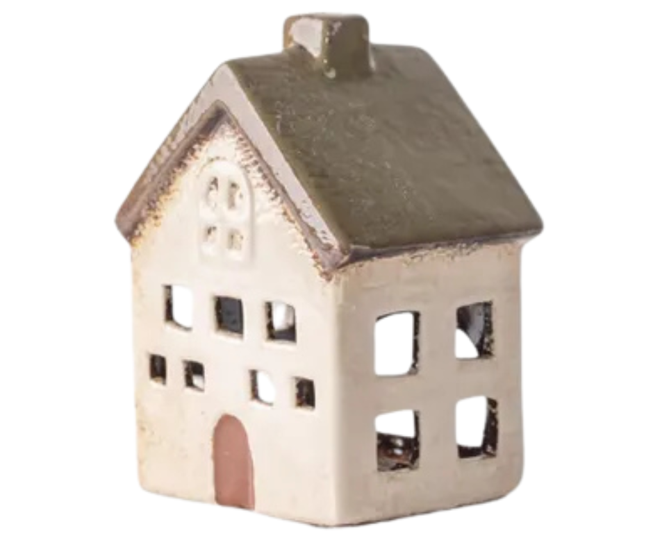 Bring a touch of magic to your home with our traditional ceramic tealight houses. Each piece is crafted with intricate details and a charming green finish, perfect for creating a festive village display or adding cozy ambience year-round. When lit, the tealight candle casts a warm, inviting glow that enhances any room.