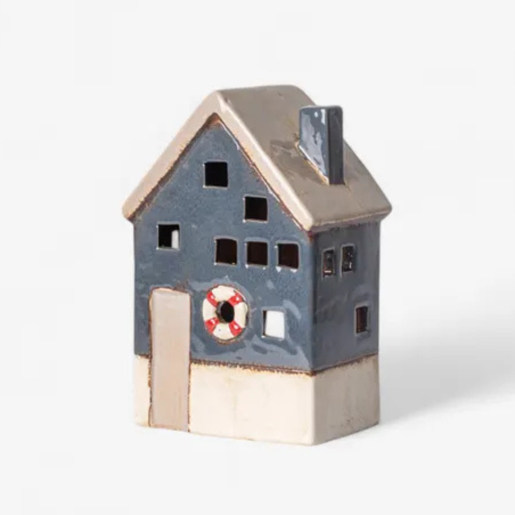 Hand-painted ceramic coastal tealight house
