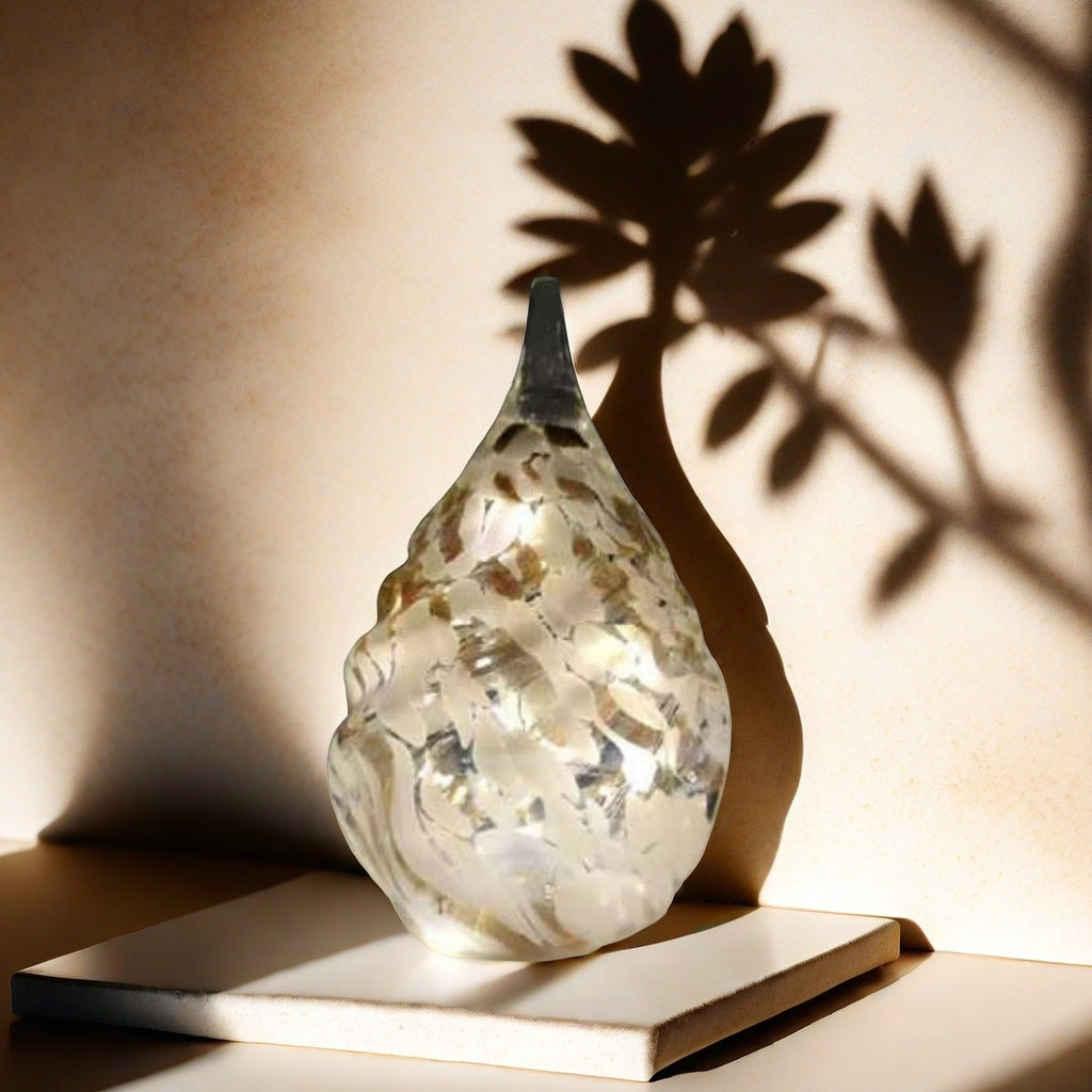 Give a gift that truly sparkles! This handmade glow light is crafted from mouth-blown glass with a dazzling teal and gold swirl. Inside, soft LED lights shimmer, making it a stunning keepsake for birthdays, anniversaries, housewarmings, or “just because.”