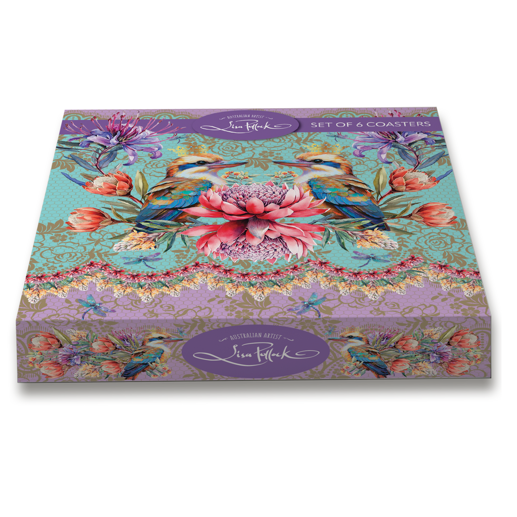 Elevate your entertaining with the Lisa Pollock Bamboo Coaster Set, a stylish and eco-friendly addition to your home. Each boxed set features beautiful, original Lisa Pollock artwork, designed to add a touch of colour, charm, and personality to your table setting.