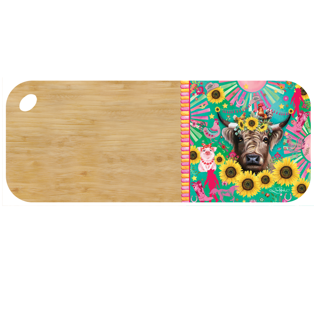 Resin Bamboo Serving Platter & Cheese Knife Coral Peony