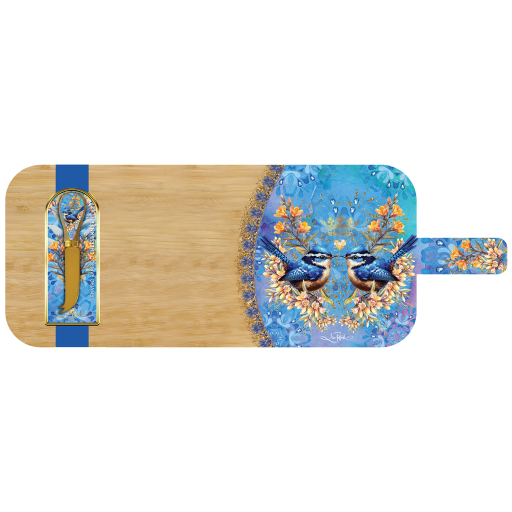 Resin Bamboo Serving Platter & Cheese Knife Tranquil Butterflies